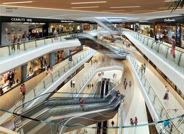 本案設計以現代、簡潔、明亮的理念為室內設計的指導原則。在建筑整體風格,材料,色彩搭配及裝飾構件等方面,以能體現現代意識、商業意識為主導思想,力求打造一個現代型購物中心。